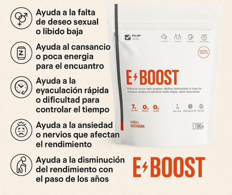 Sí, E-BOOST contiene maca negra, huanarpo y guaraná, ingredientes naturales reconocidos por mejorar la circulación y estimular la respuesta sexual masculina. Al aumentar el flujo sanguíneo y equilibrar las hormonas, ayuda a lograr y mantener erecciones firmes y duraderas, incluso en quienes ya han perdido potencia o confianza.